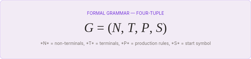 A formal grammar is a four-tuple: G = (N, T, P, S).