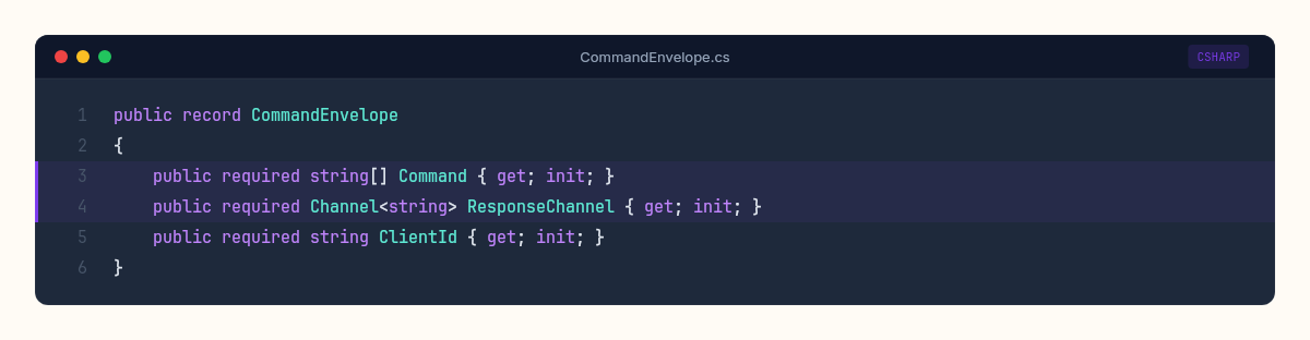 var commandChannel = Channel.CreateUnbounded<CommandEnvelope>();