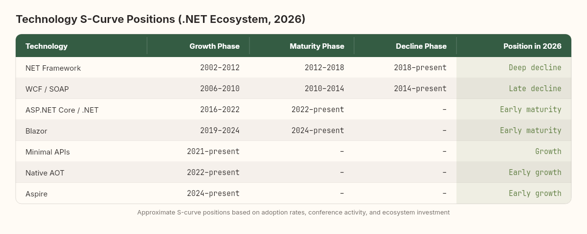 The S-curve graveyard: .NET Framework, WCF, and the maturity trap